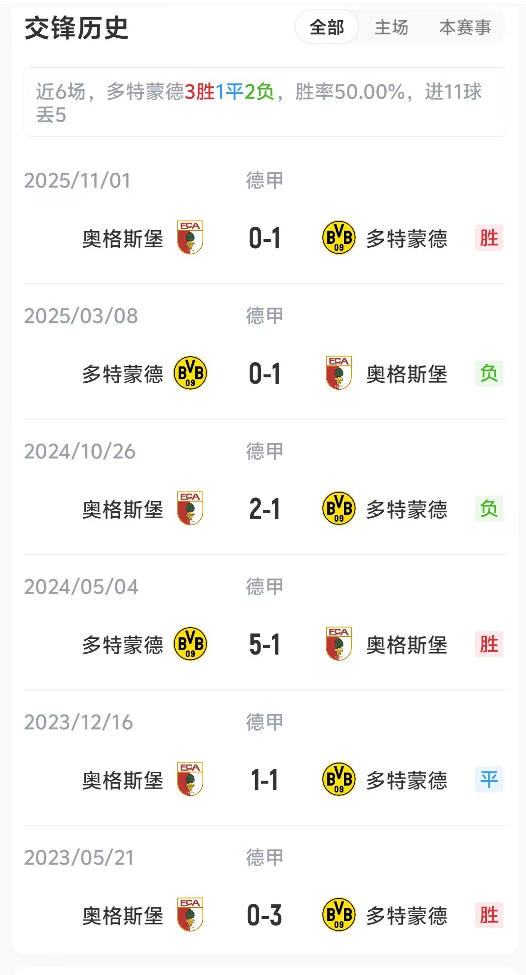 赛前多特16胜7平2负积55分排名第2,奥格斯堡9胜4平12负积31分排名第9。两队首回合交锋多特客场1-0战胜奥格斯堡。